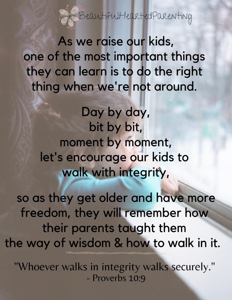 It doesn’t mean they always will, but when they choose dishonesty, it’s our responsibility to give them natural consequences, and to redirect them. They’re kids – they’re meant to challenge us. But, our role as parents is to continue redirecting them to wisdom, to the Lord, to love – one moment at a time.
