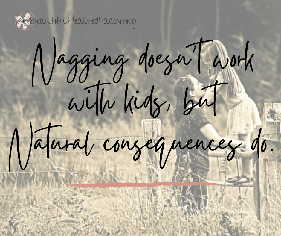 Now, since I’m not reminding them, if they forget something for school, they forget it – they’ll learn far more powerfully through natural consequences instead of nagging words or constant reminders which take away their need to think.