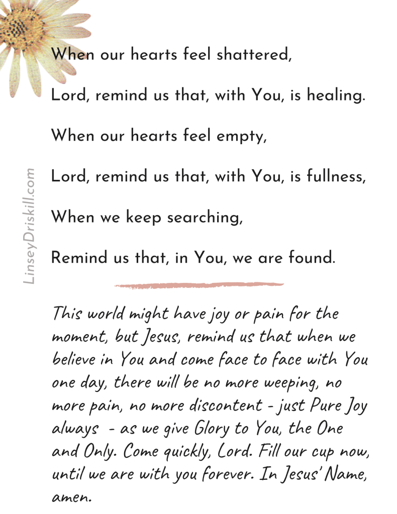 Sometimes when we give our kids a few moments to gather themselves, they recover, and sometimes they retreat to their rooms. My daughter retreated to her room with glassy eyes. I knew she didnāt need a speech, but needed me to just come alongside her. So, I went into her room, sat on her bed, put my arm around her, looked into her eyes, and told her I loved her so much.